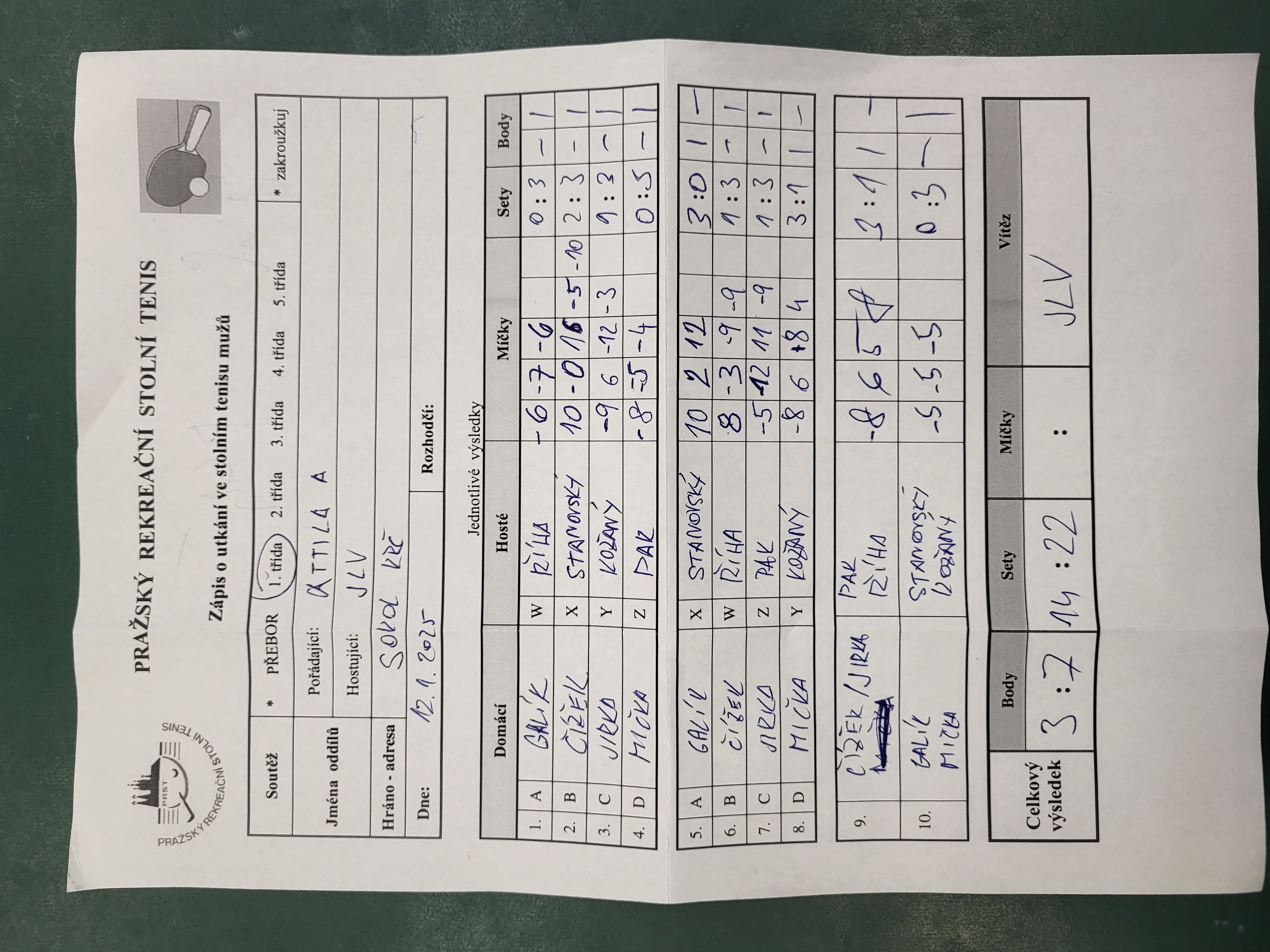 | 13/2 | Attila A | JLV A | 3 : 7 | po 12.01.2026 18:00 | | | 12.01.2026 20:15 ondra. |