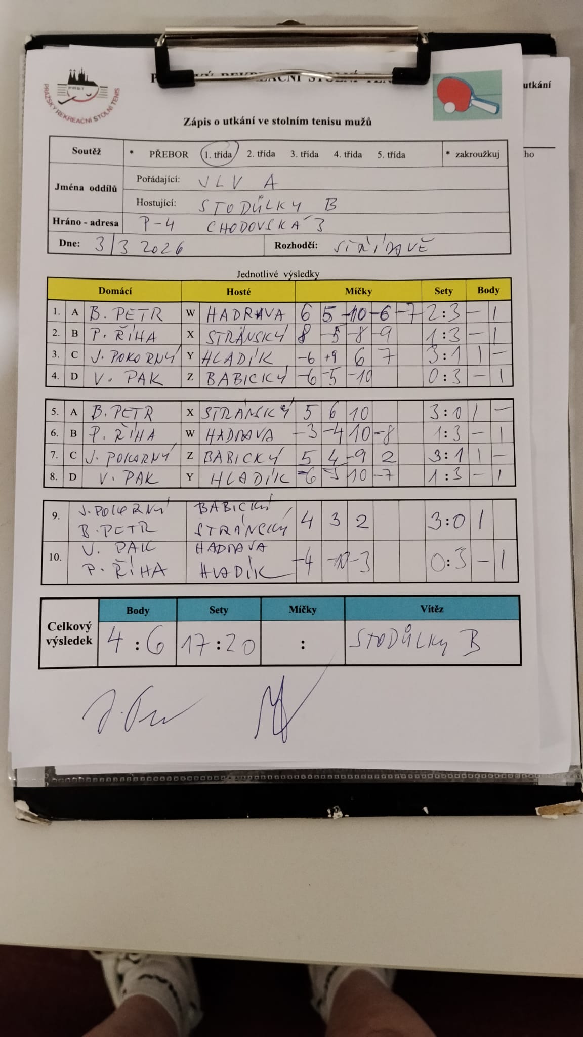 | 18/5 | JLV A | Stodůlky B | 4 : 6 | út 03.03.2026 19:00 | | | 03.03.2026 20:53 prst.j |