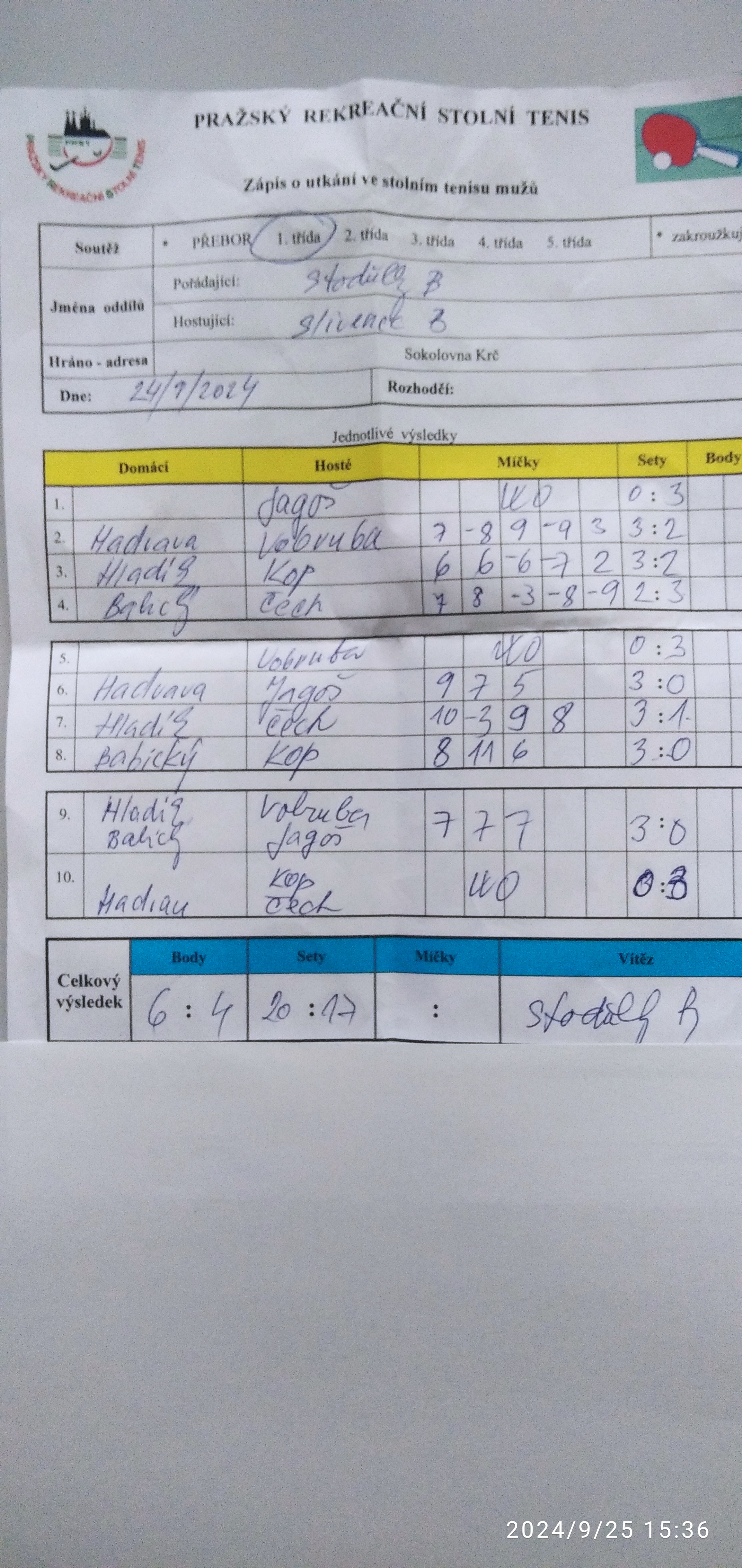 | 3/4 | Slivenec B | Rokoska | 9 : 1 | čt 16.10.2025 18:00 | | | 16.10.2025 20:34 arbrat |