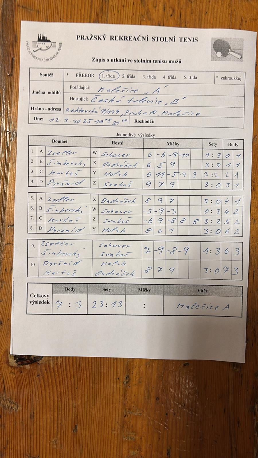 | 6/4 | Malešice A | Česká televize B | 3 : 7 | st 29.10.2025 19:15 | | | 30.10.2025 11:55 radek. |