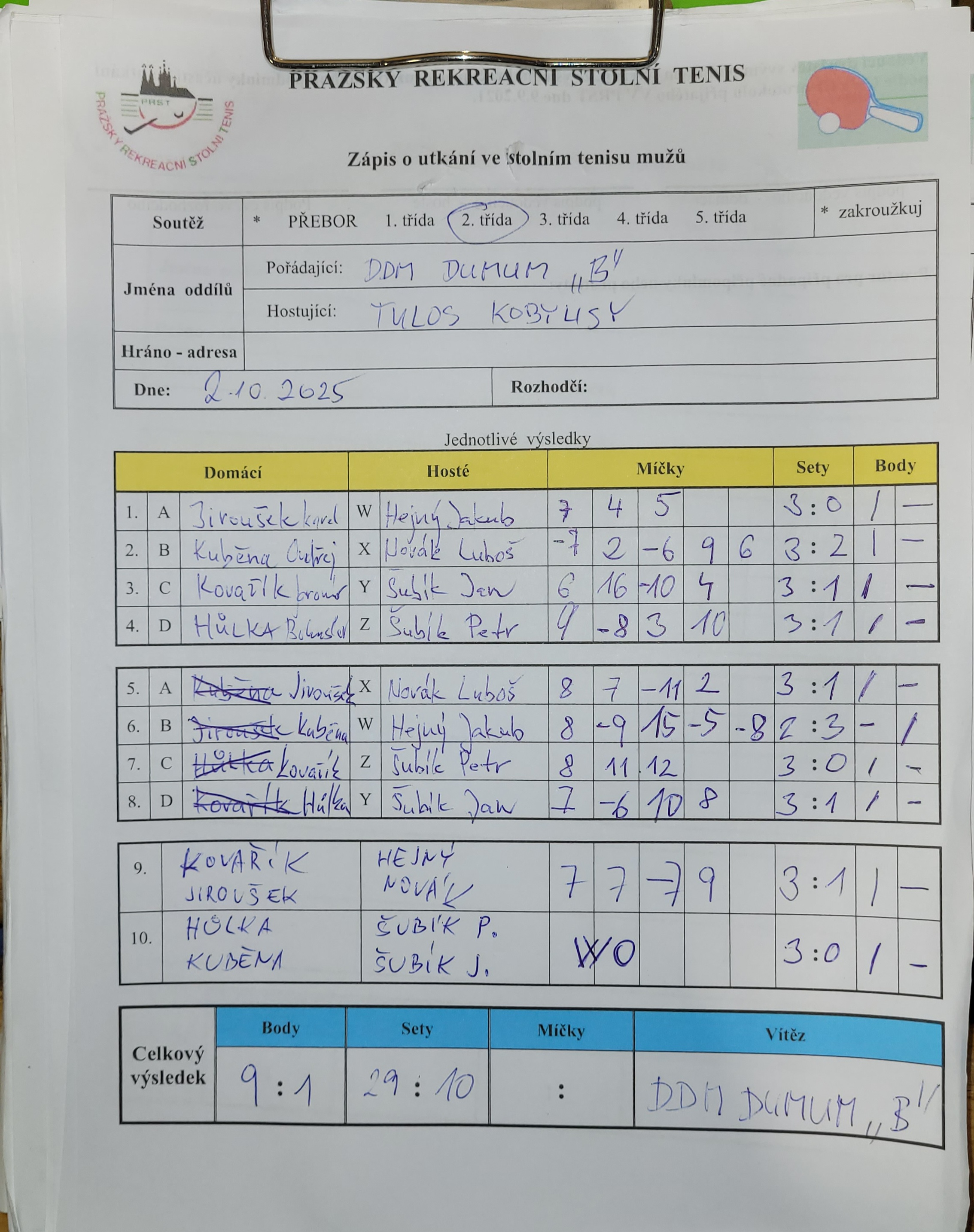 | 3/3 | DDM Praha 10 B | Tulos Kobylisy | 9 : 1 | čt 02.10.2025 20:00 | | | 02.10.2025 22:27 bhulka |