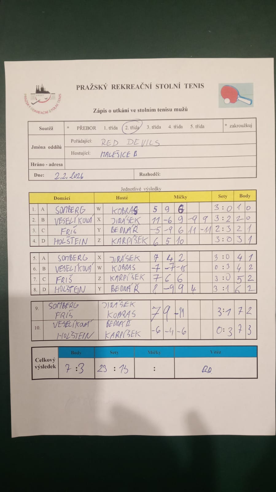 | 14/6 | Red Devils | Malešice B | 7 : 3 | po 02.02.2026 19:00 | | | 03.02.2026 12:38 radek. |