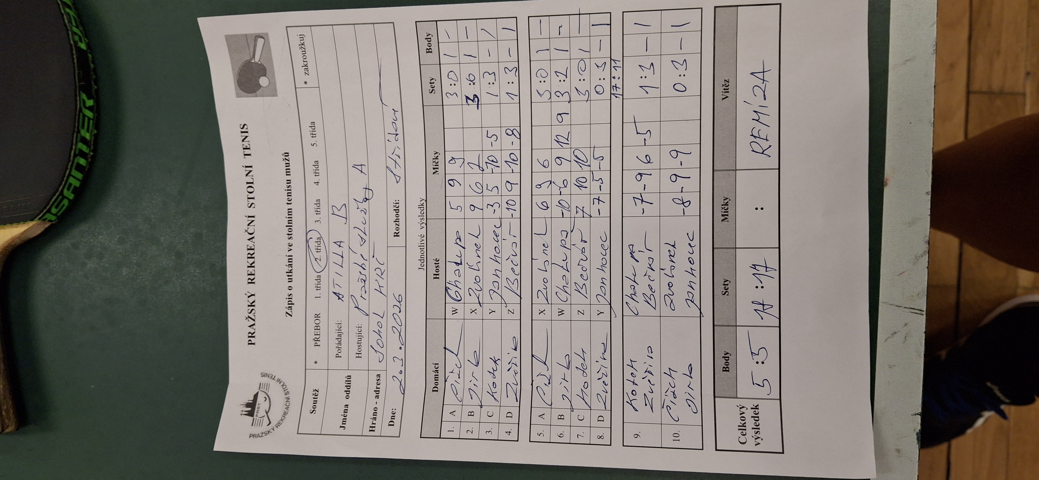 | 18/3 | Attila B | Pražské služby A | 5 : 5 | po 02.03.2026 20:00 | | | 02.03.2026 21:33 c.venc |
