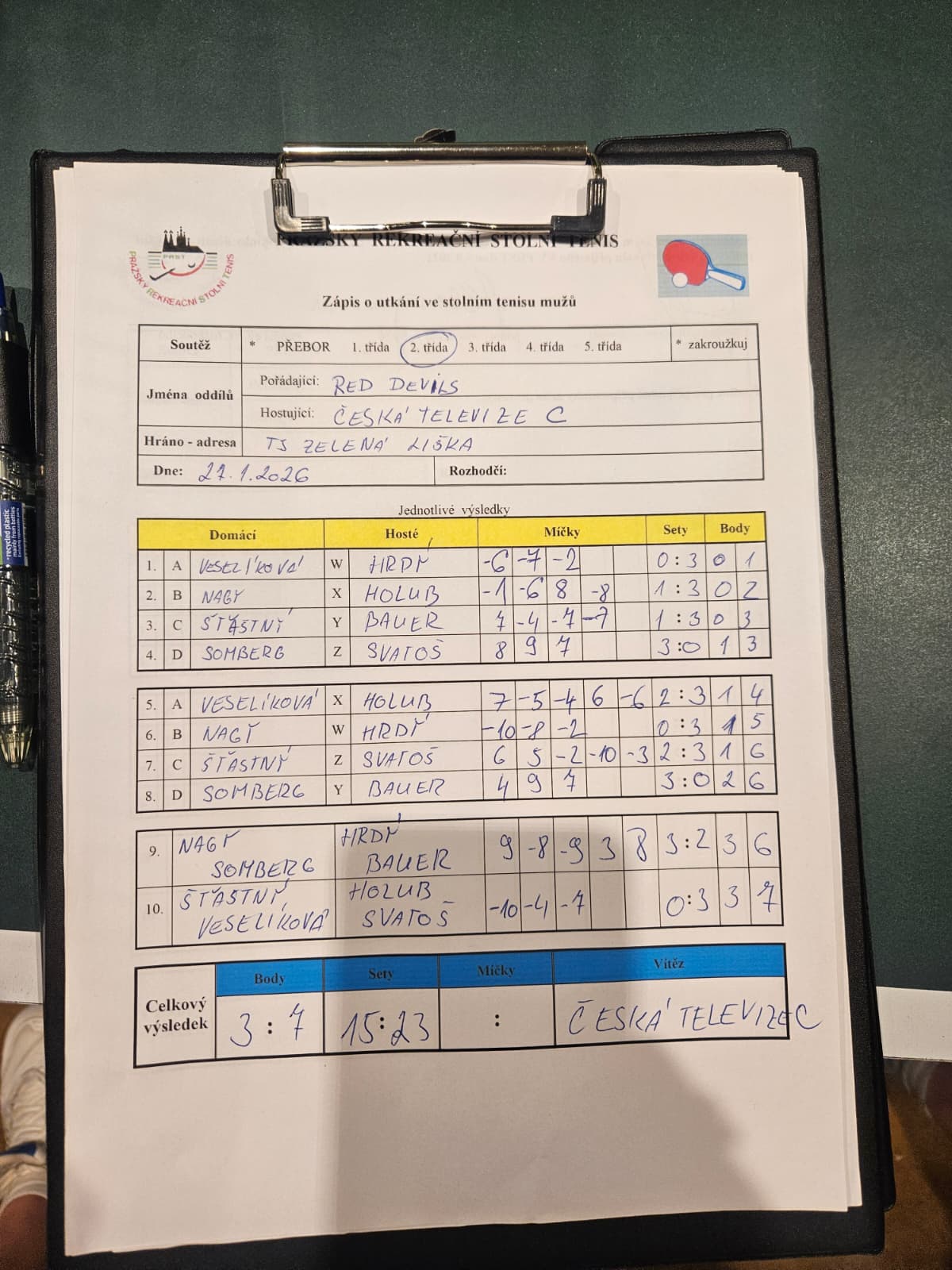 | 14/2 | Česká televize C | Matuna Dream A | 7 : 3 | út 20.01.2026 18:00 | | | 21.01.2026 10:09 radek. |