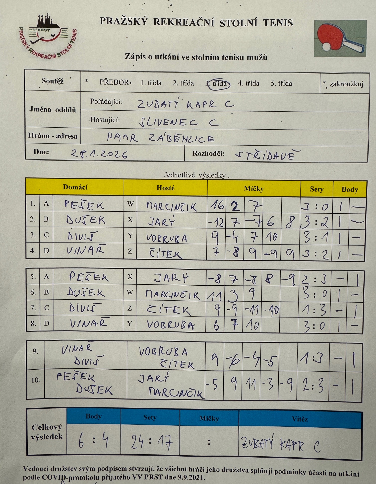 | 10/3 | Slivenec C | Attila C | 4 : 6 | čt 04.12.2025 18 00 | | | 04.12.2025 20:29 v.jago |