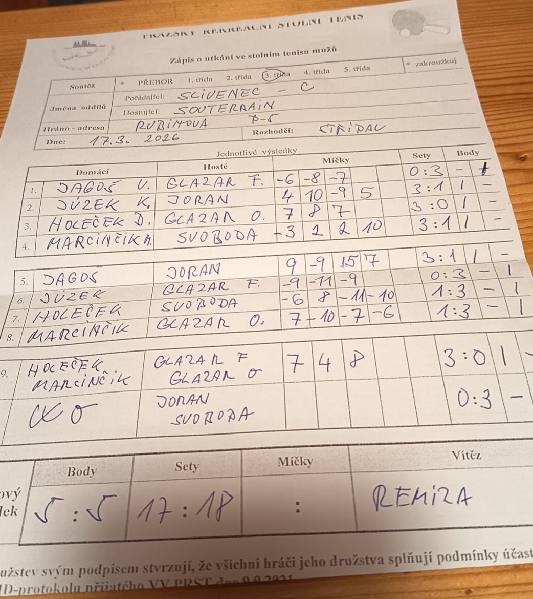 | 16/2 | Slivenec C | AC Souterrain | 5 : 5 | út 17.03.2026 18:00 | | | 17.03.2026 21:05 v.jago |