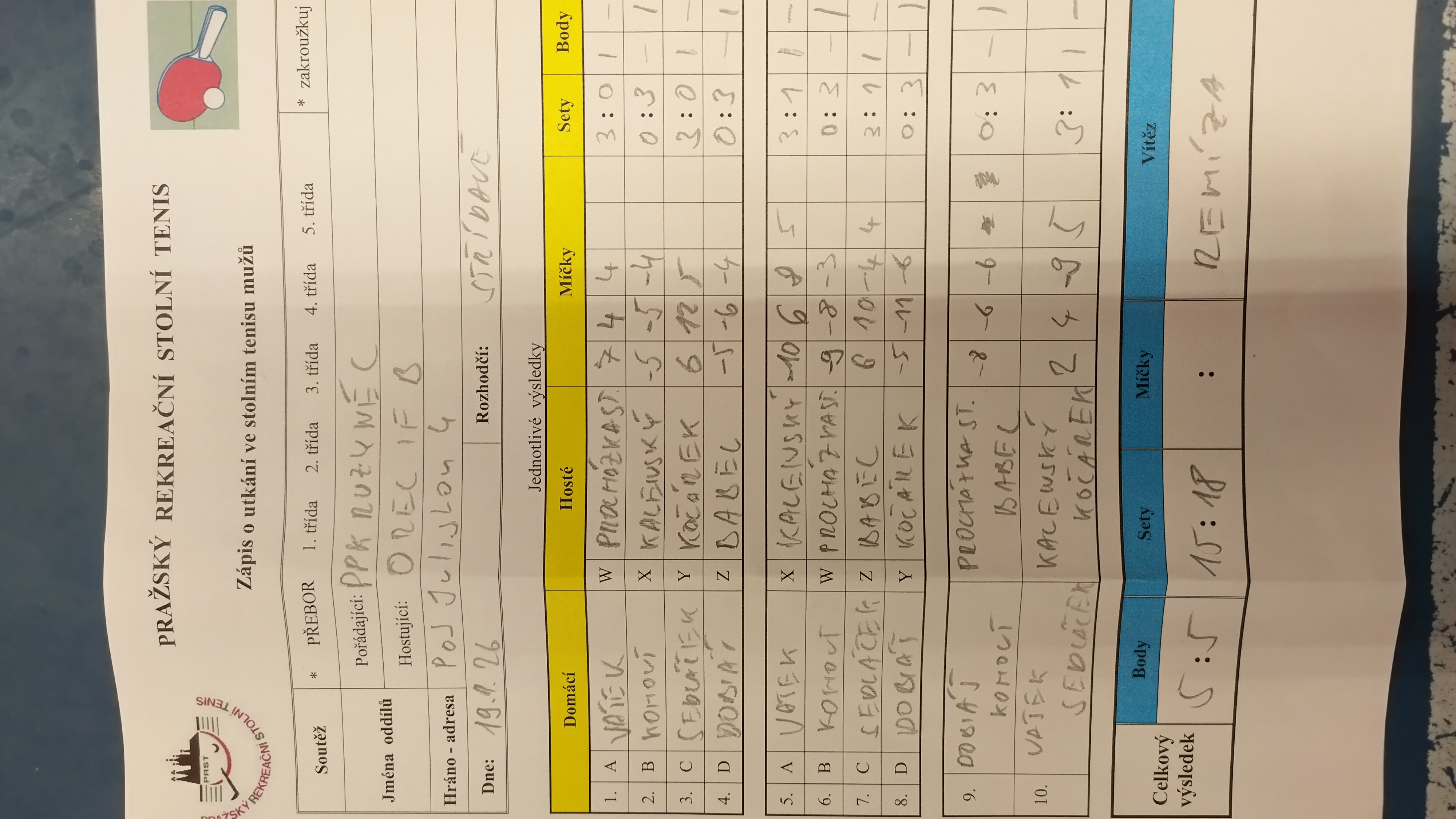 | 15/3 | PPK Ruzyně C | Orel I.F. B | 5 : 5 | po 19.01.2026 19:20 | | | 19.01.2026 20:54 mar.se |