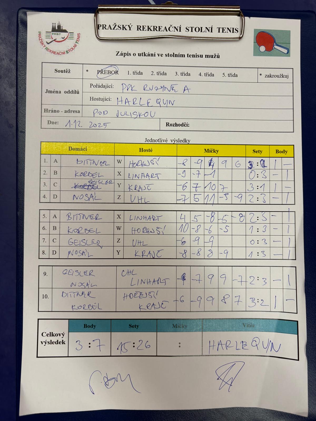| 10/1 | PPK Ruzyně A | Harlequin | 3 : 7 | po 01.12.2025 19:00 | | | 04.12.2025 13:06 jirino |