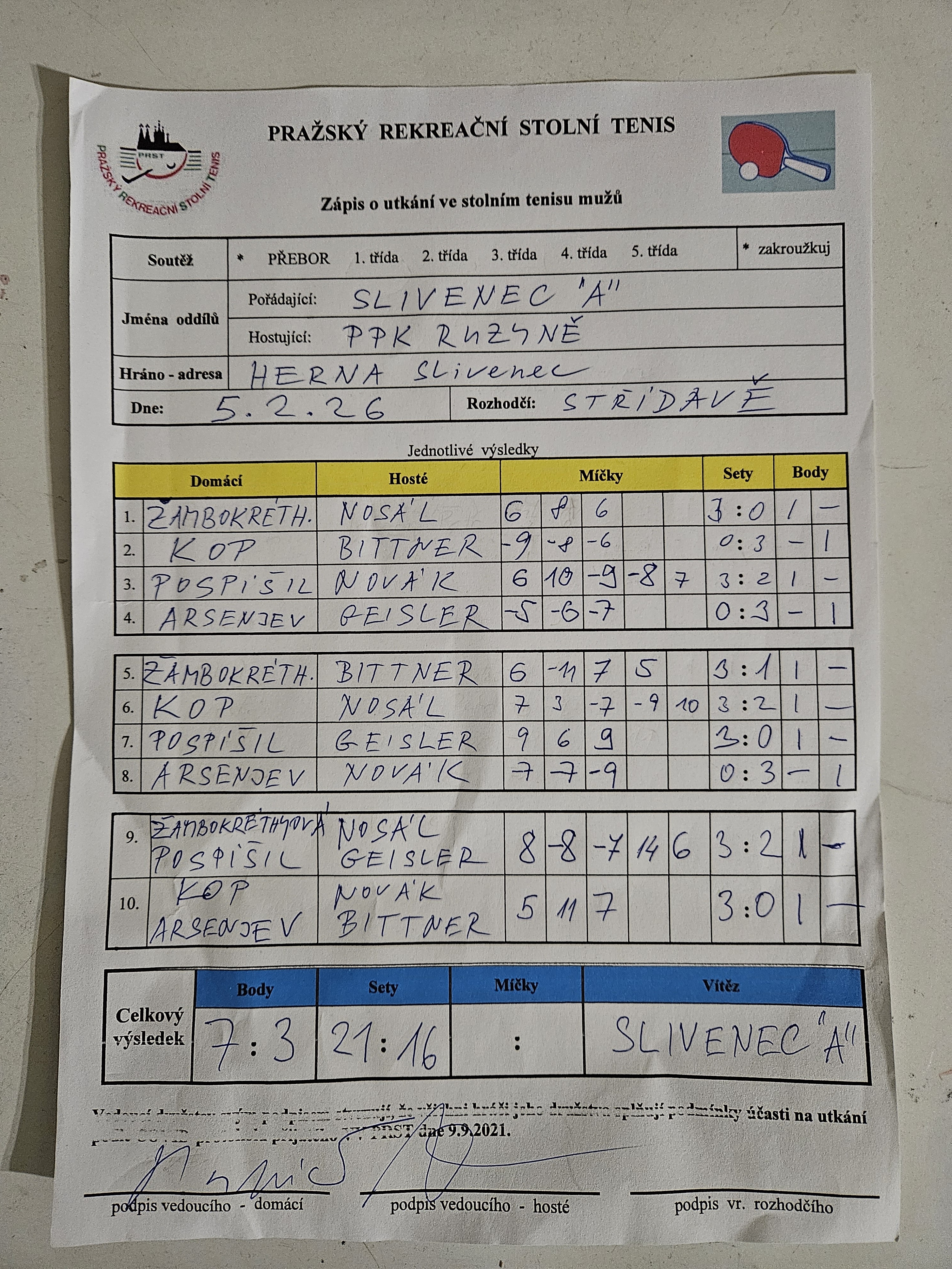 | 15/1 | Slivenec A | PPK Ruzyně A | 7 : 3 | čt 05.02.2026 18:00 | | | 05.02.2026 20:44 pospis |