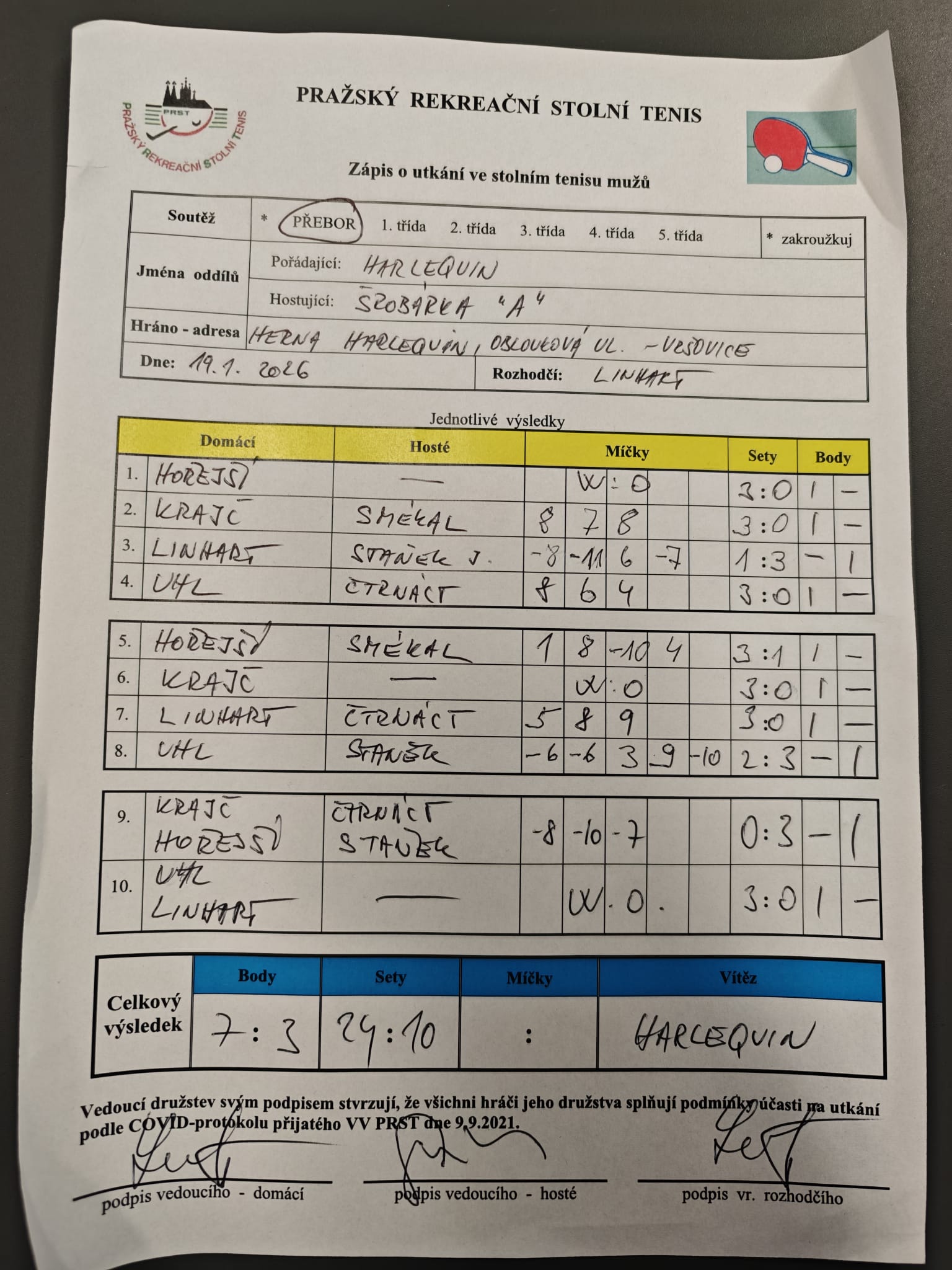 | 14/3 | Harlequin | Šrobárka A | 7 : 3 | po 19.01.2026 18:00 | | | 19.01.2026 21:43 ivan |