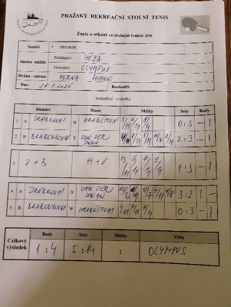 | 6/4 | Slavoj Holešovice | Olympus | 5 : 0 | 10.11. - 13.11. | | | 13.11.2025 14:18 fenclo |