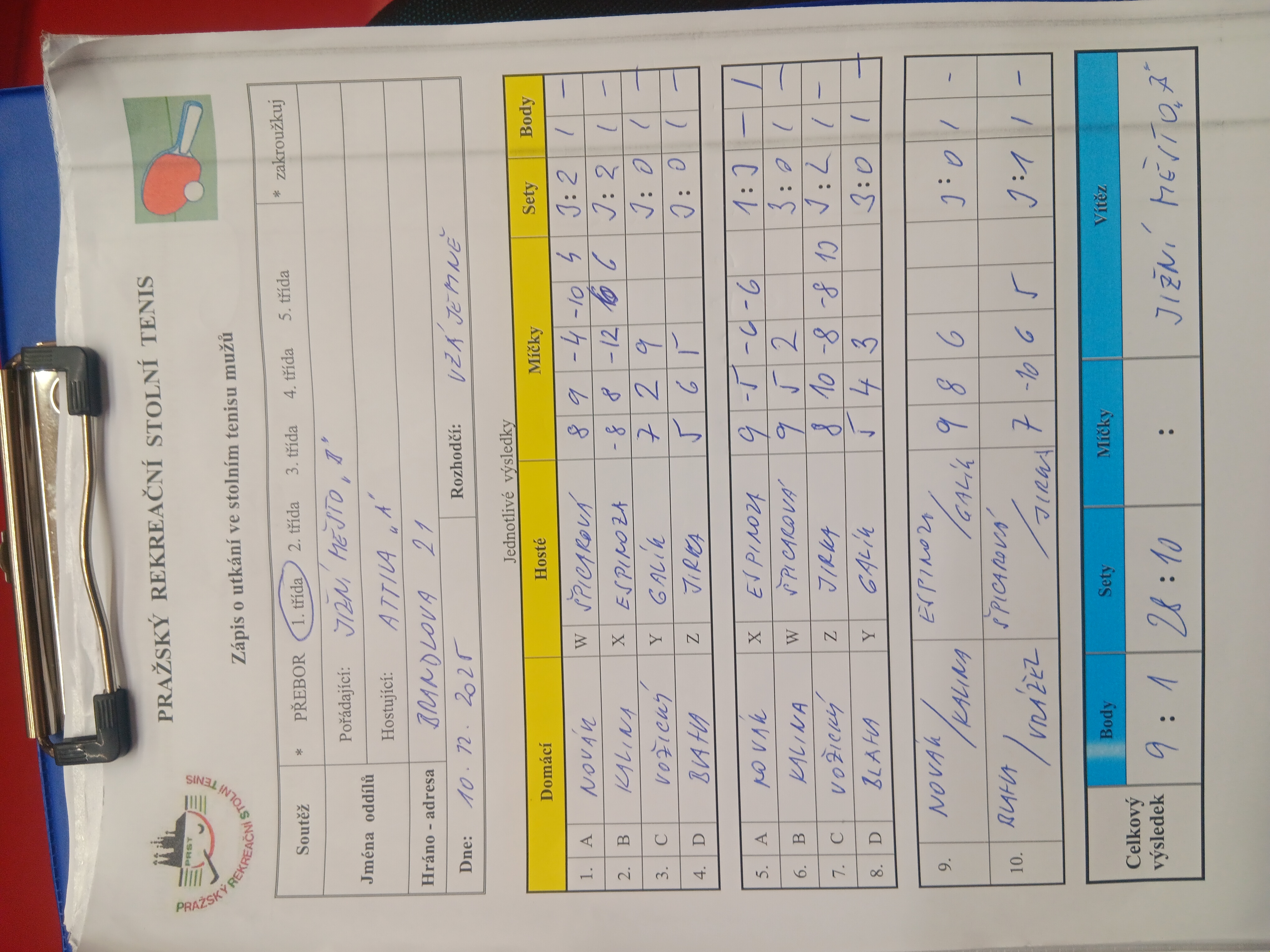 | 10/4 | Attila A | Stodůlky B | 3 : 7 | st 17.12.2025 18:00 | | | 17.12.2025 19:52 ondra. |
