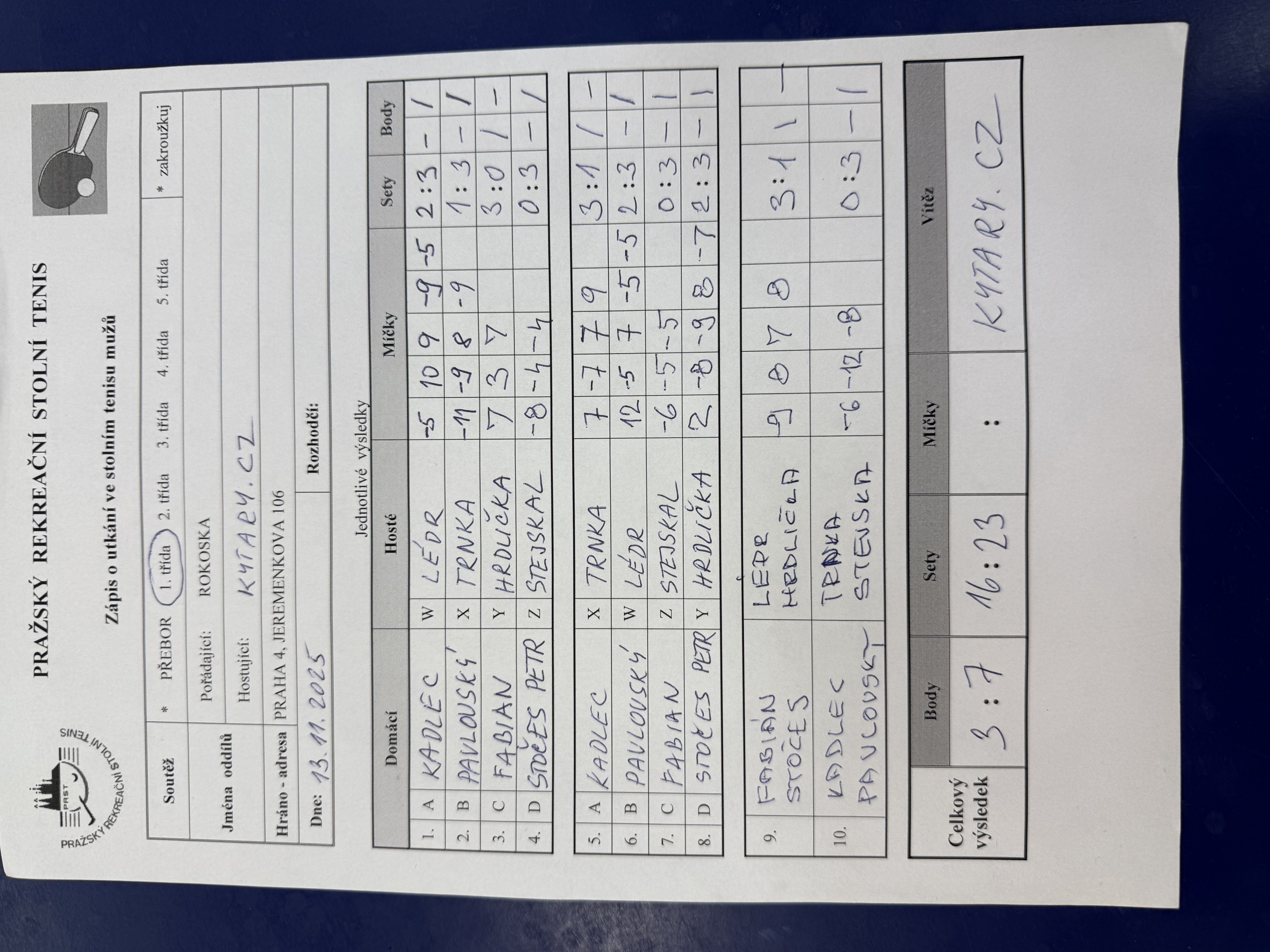 | 8/1 | Kytary.cz | Rokoska | 7 : 3 | čt 13.11.2025 19:00 | výměna pořadatelství => herna Rokoska | | 13.11.2025 22:32 vita.t |