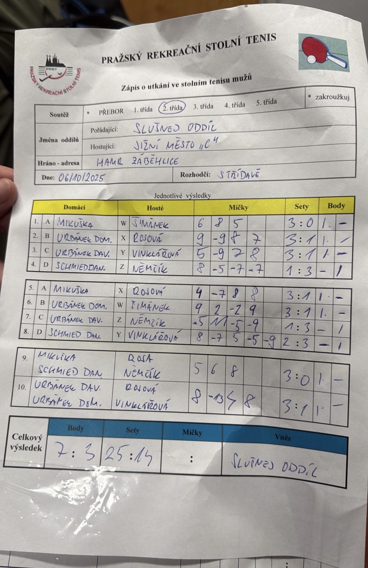 | 4/3 | Slušnej oddíl | Jižní Město C | 7 : 3 | po 06.10.2025 20:00 | | | 06.10.2025 22:02 s.schm |