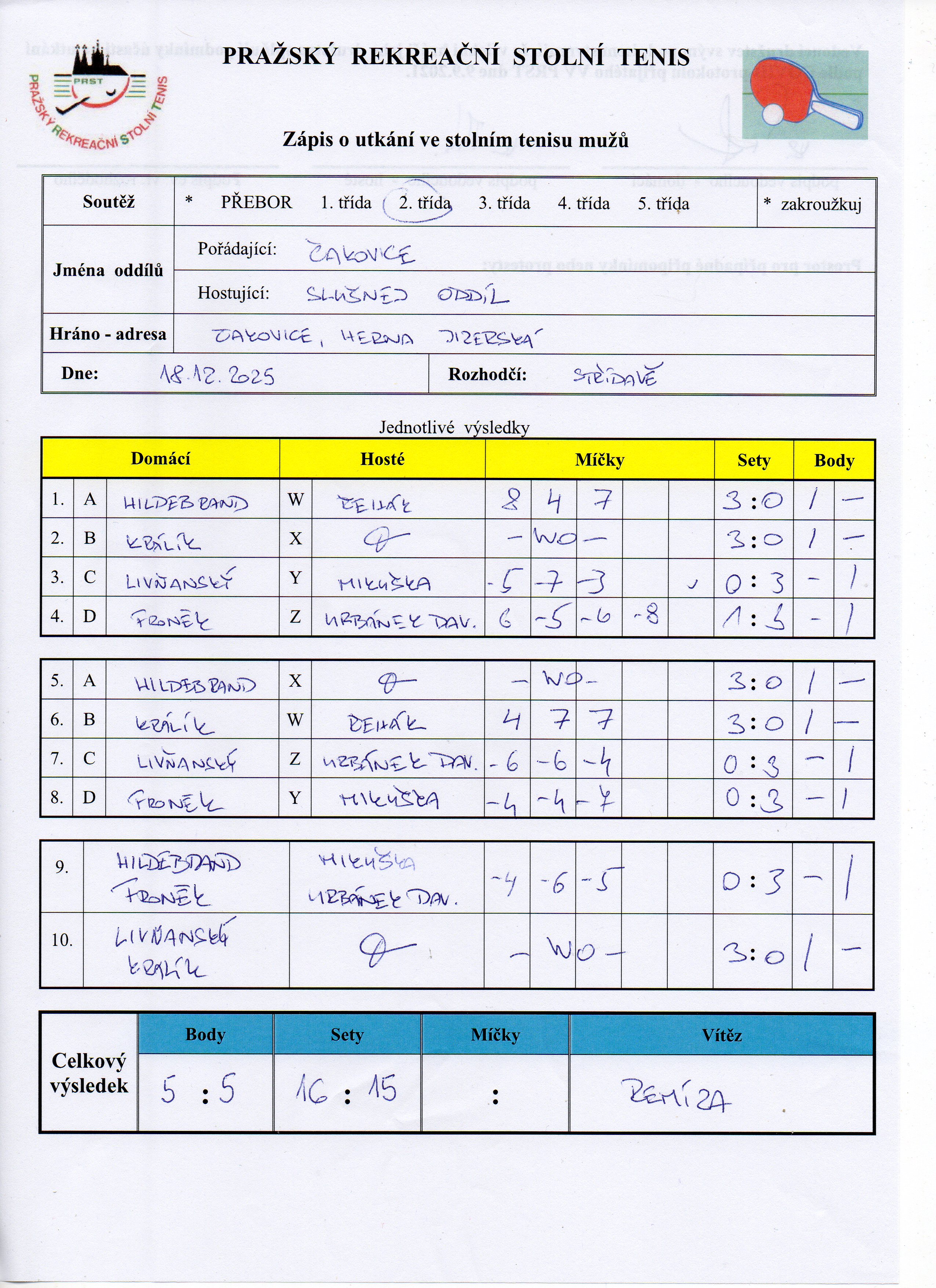 | 12/3 | Slušnej oddíl | Attila B | 5 : 5 | po 05.01.2026 19:00 | | | 06.01.2026 10:46 s.schm |