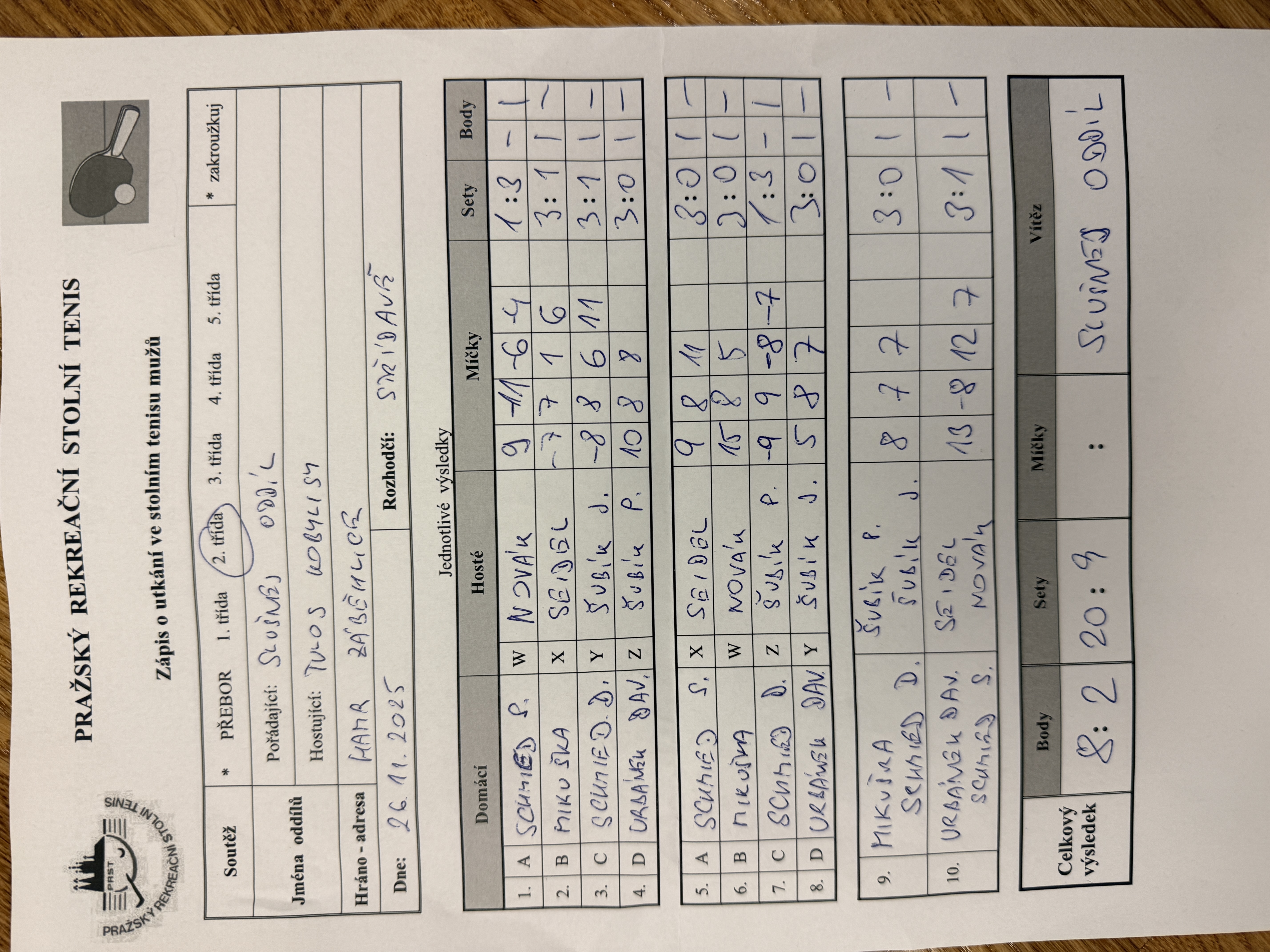 | 8/1 | Česká televize C | Slušnej oddíl | 7 : 3 | út 11.11.2025 18:00 | | | 12.11.2025 09:06 radek. |