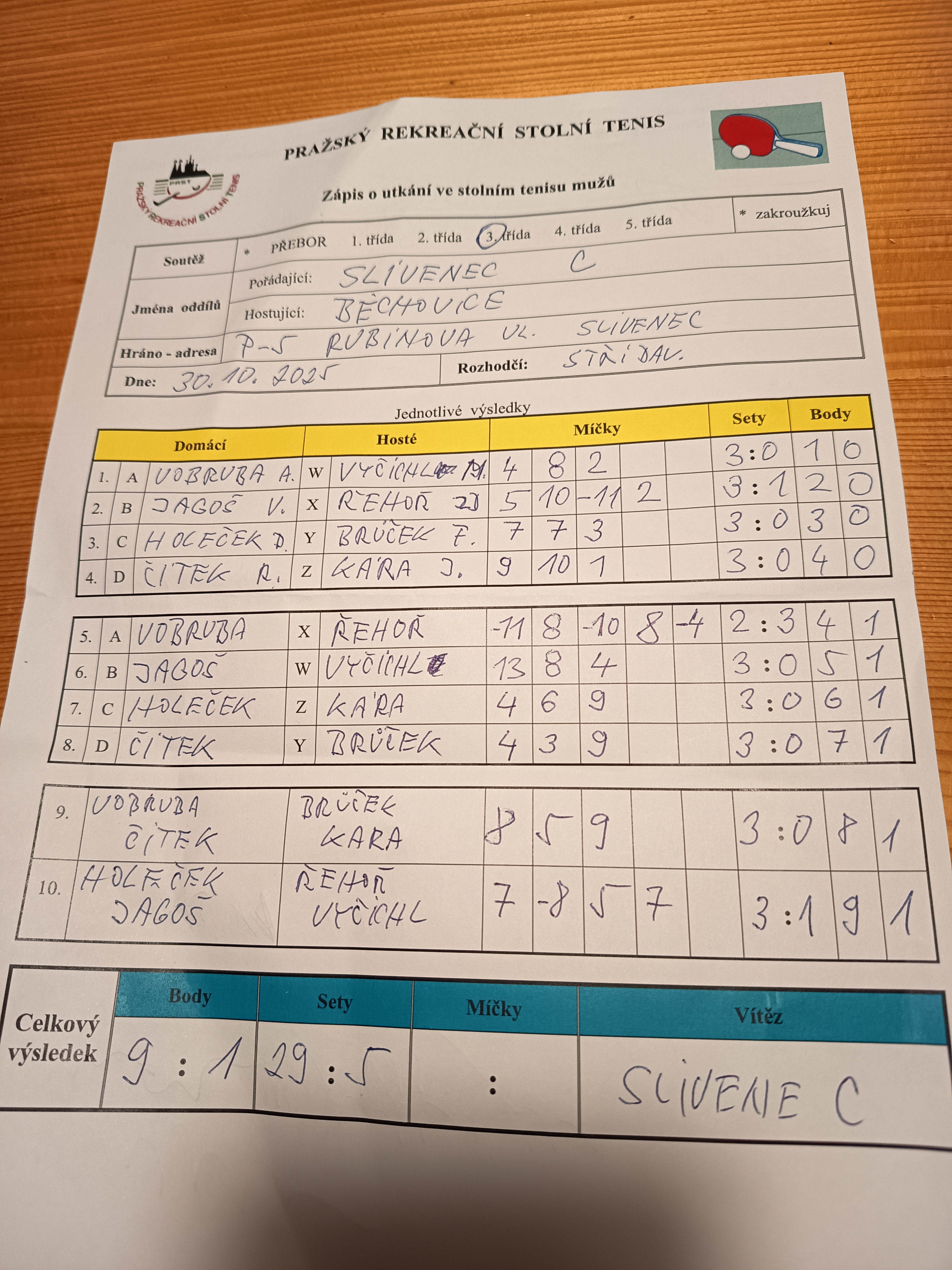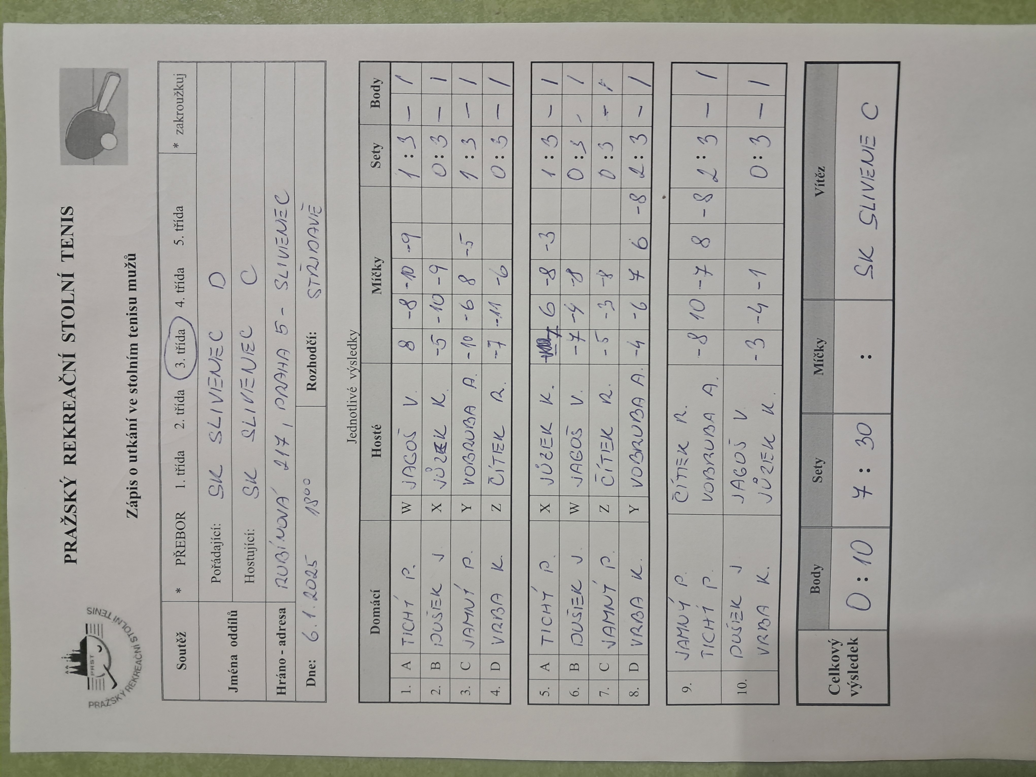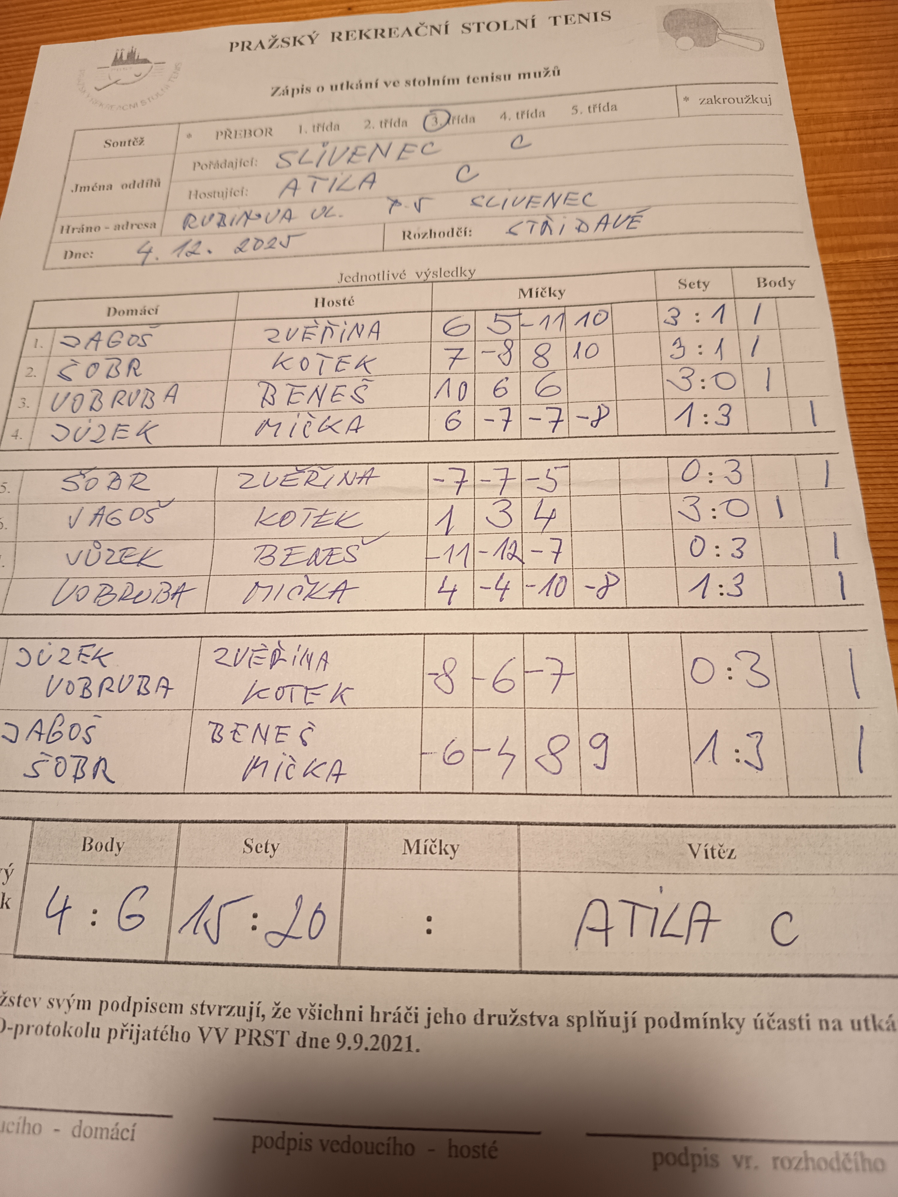 | 10/3 | Slivenec C | Attila C | 4 : 6 | čt 04.12.2025 18 00 | | | 04.12.2025 20:29 v.jago |