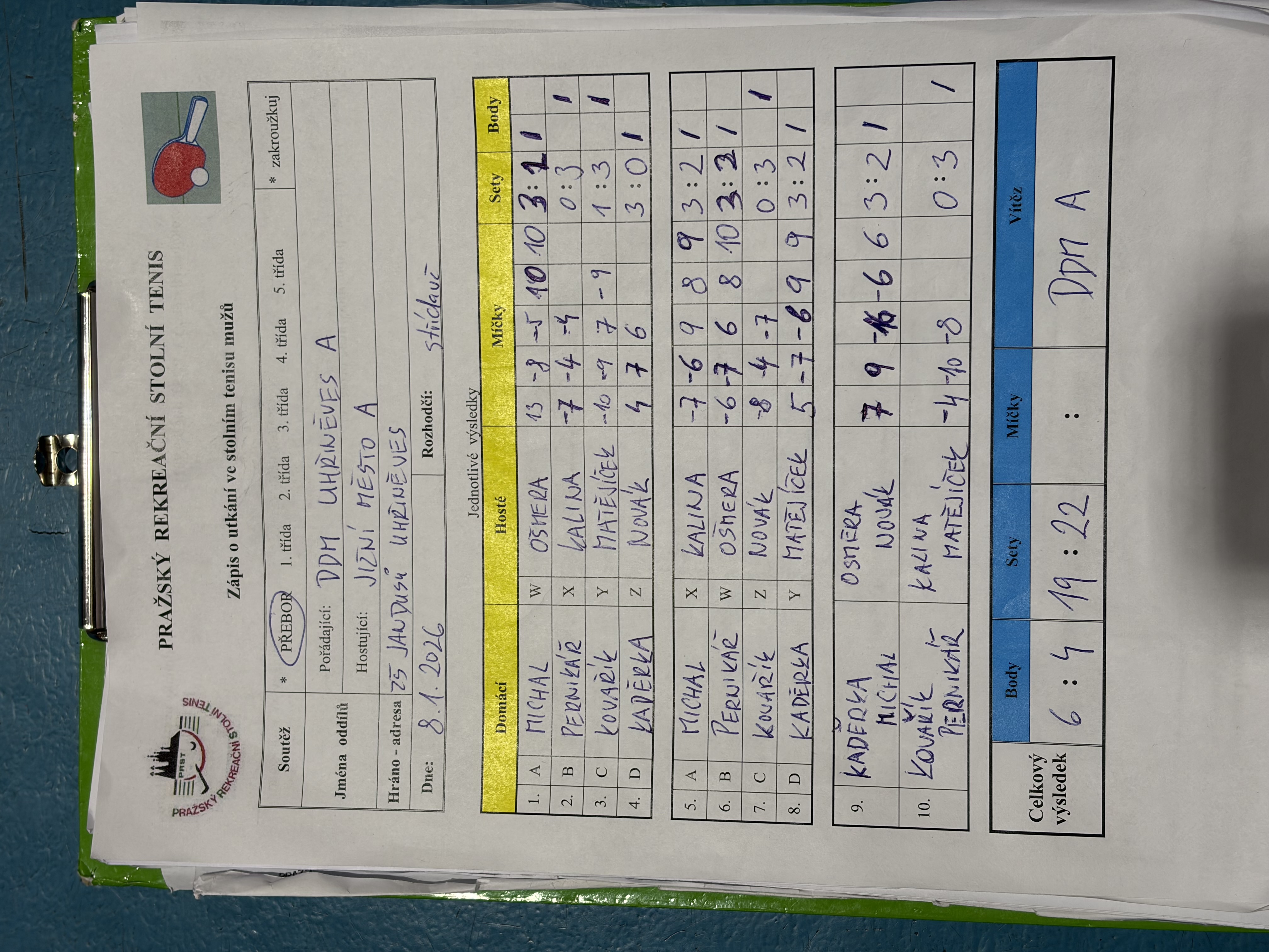 | 12/3 | DDM Praha 10 A | Jižní Město A | 6 : 4 | čt 08.01.2026 20:00 | | | 08.01.2026 22:45 jaromi |