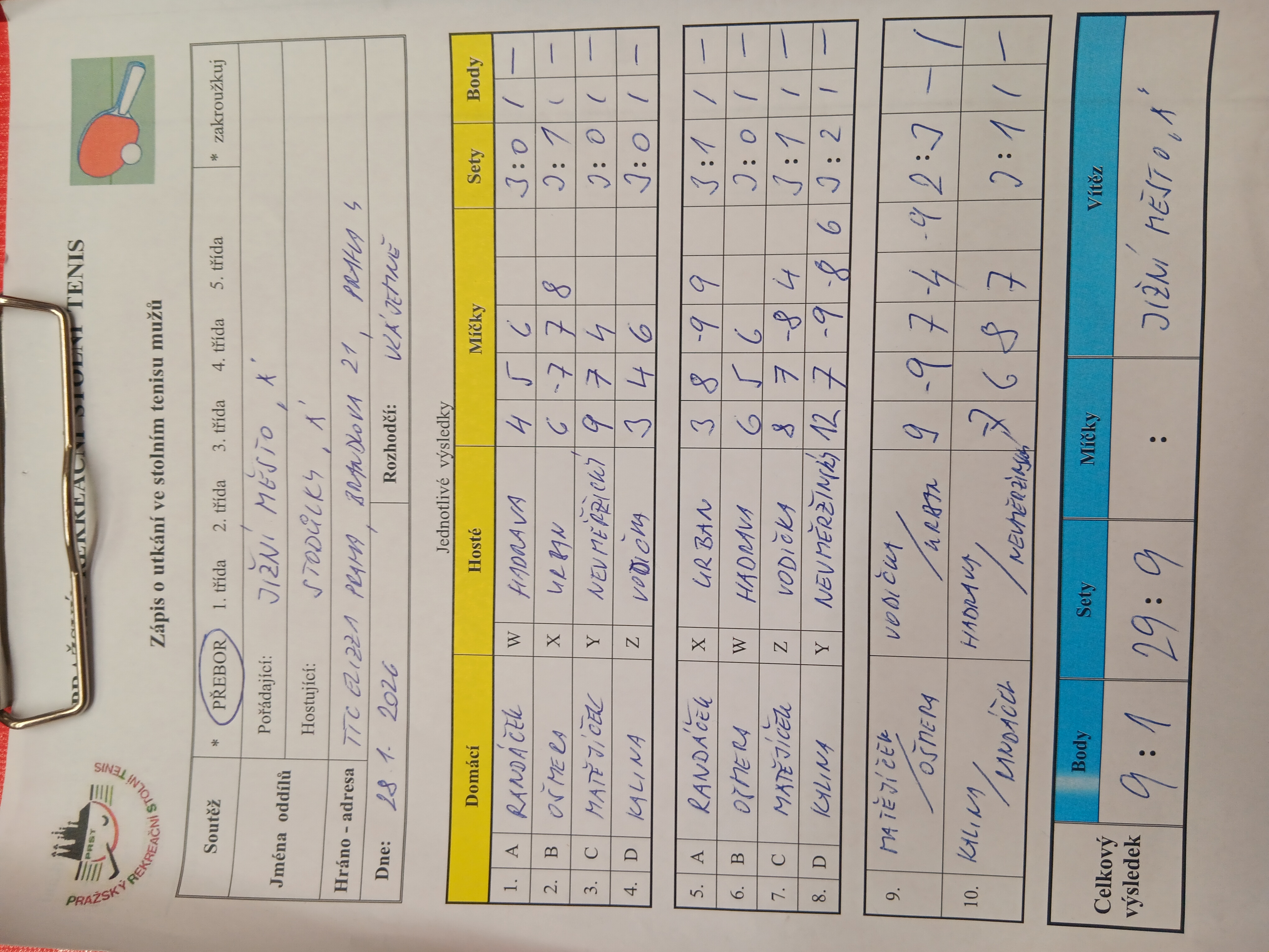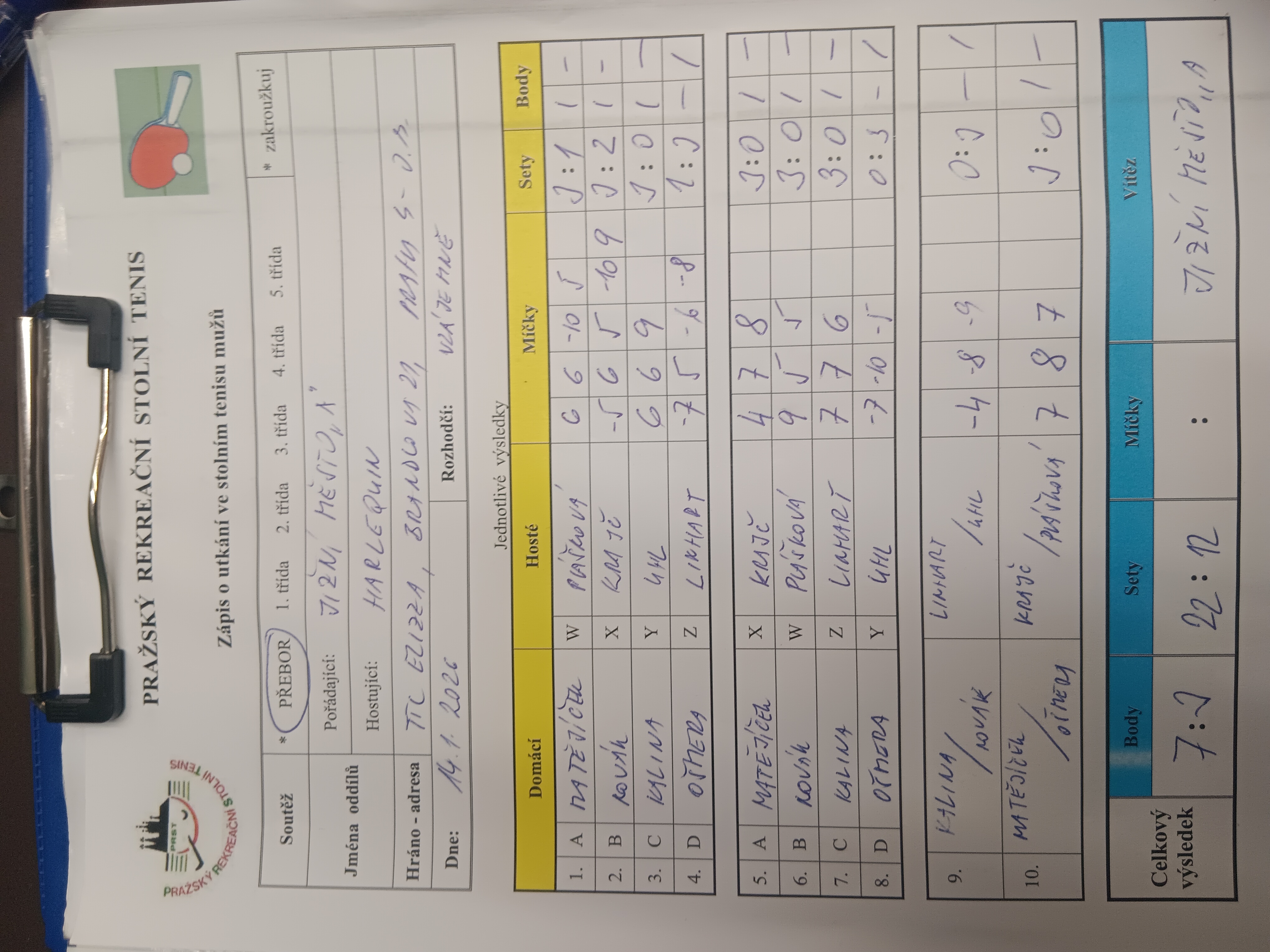 | 14/1 | Orion Modřany A | Jižní Město A | 5 : 5 | po 02.02.2026 19:10 | | | 03.02.2026 12:14 radek. |
